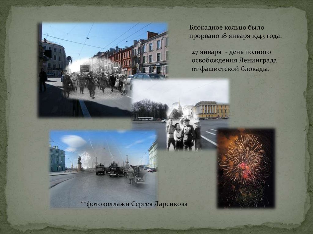 Блокадное кольцо былопрорвано 18 января 1943 года.