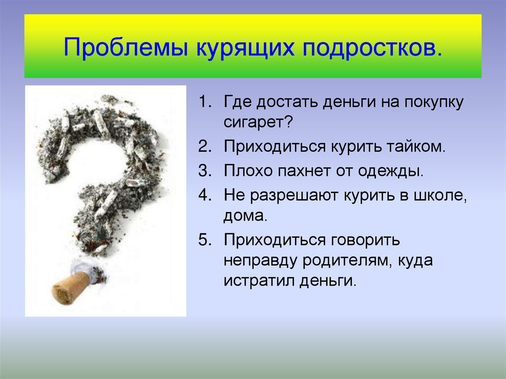 Проблемы курящих подростков.1. Где достать деньги на покупку