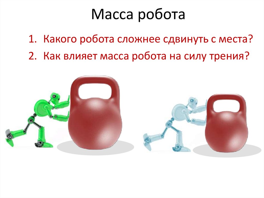 Масса робота1. Какого робота сложнее сдвинуть с места?
