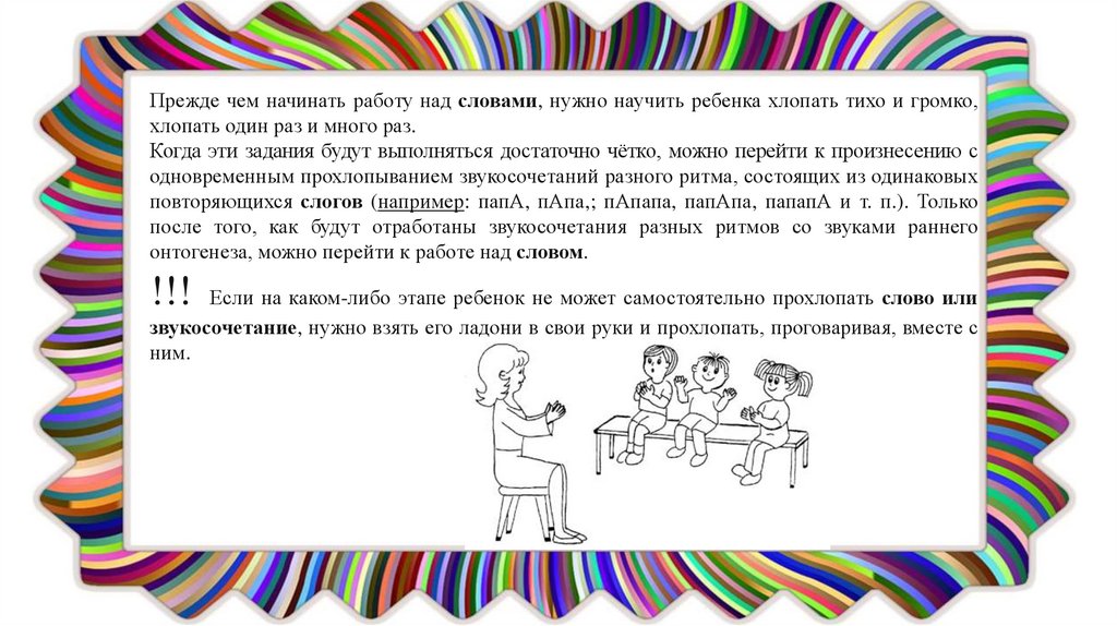 В основе работы над речевым ритмом или ритмом на уровне слова лежит прохлопывание