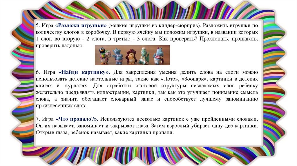 6. Игра «Найди картинку». Для закрепления умения делить слова на слоги можно