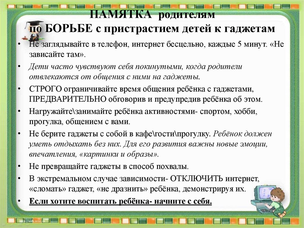 ПАМЯТКА родителямпо БОРЬБЕ с пристрастием детей к гаджетам