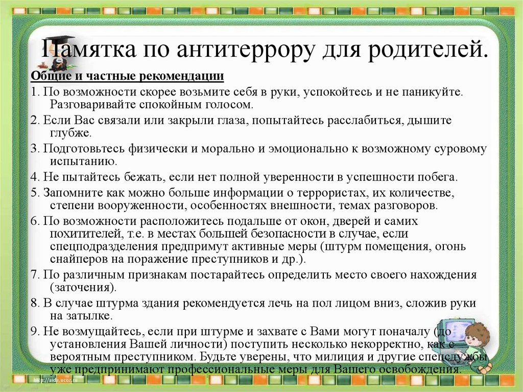 Памятка по антитеррору для родителей.Общие и частные рекомендации