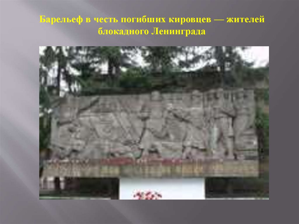 Барельеф в честь погибших кировцев — жителейблокадного Ленинграда