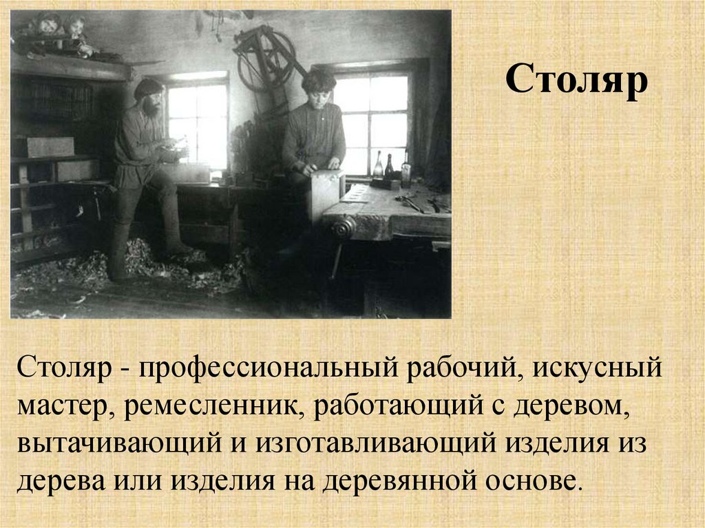 СтолярСтоляр - профессиональный рабочий, искусный