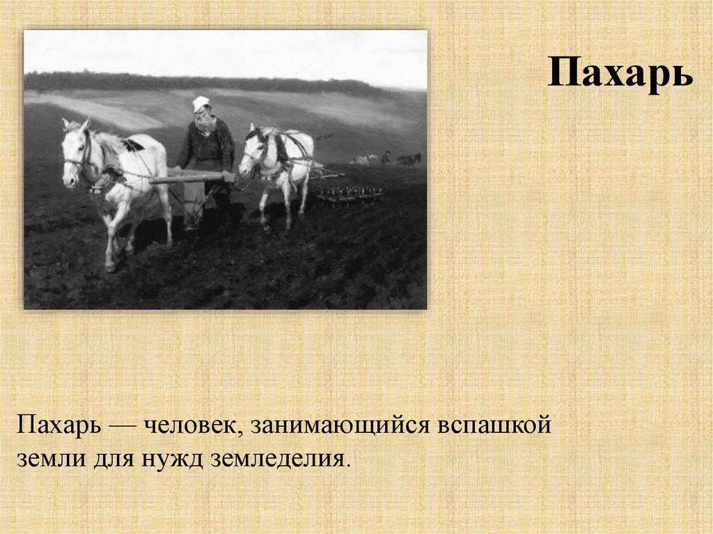 ПахарьПахарь — человек, занимающийся вспашкой