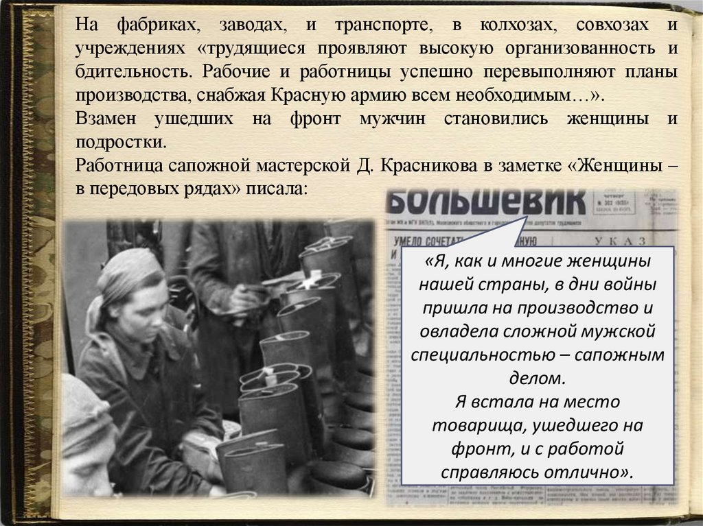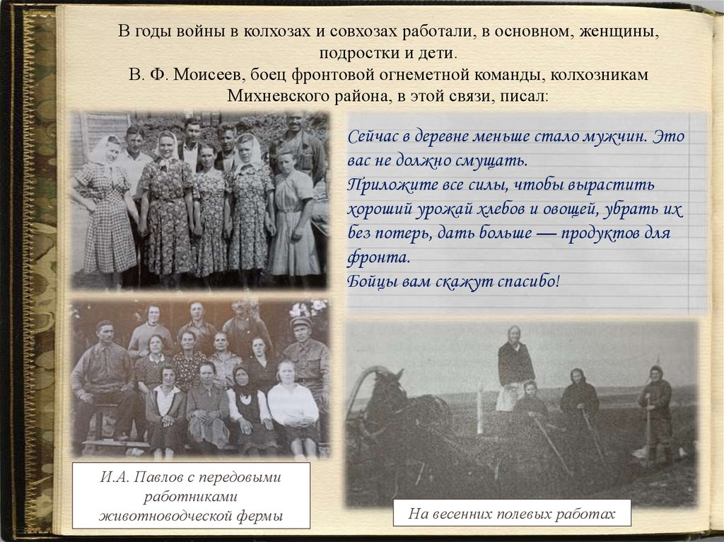 В годы войны в колхозах и совхозах работали, в основном, женщины,подростки и дети.