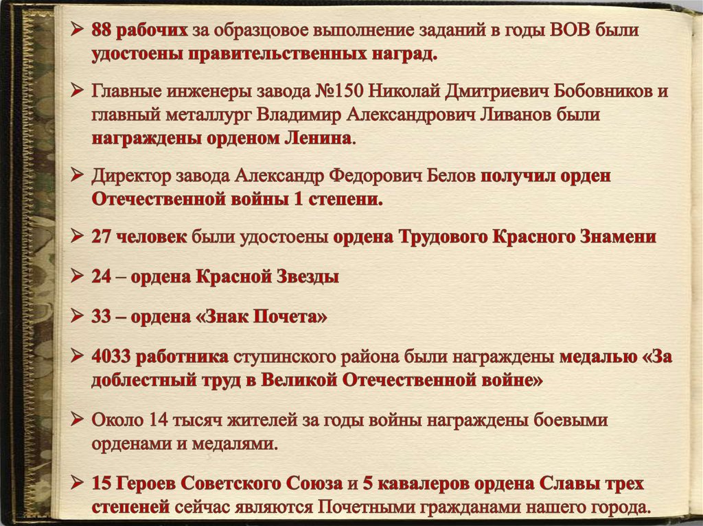 Ступинцы самоотверженным трудом приближали день Победымного и упорно работали, создавали фонд обороны, направляли в