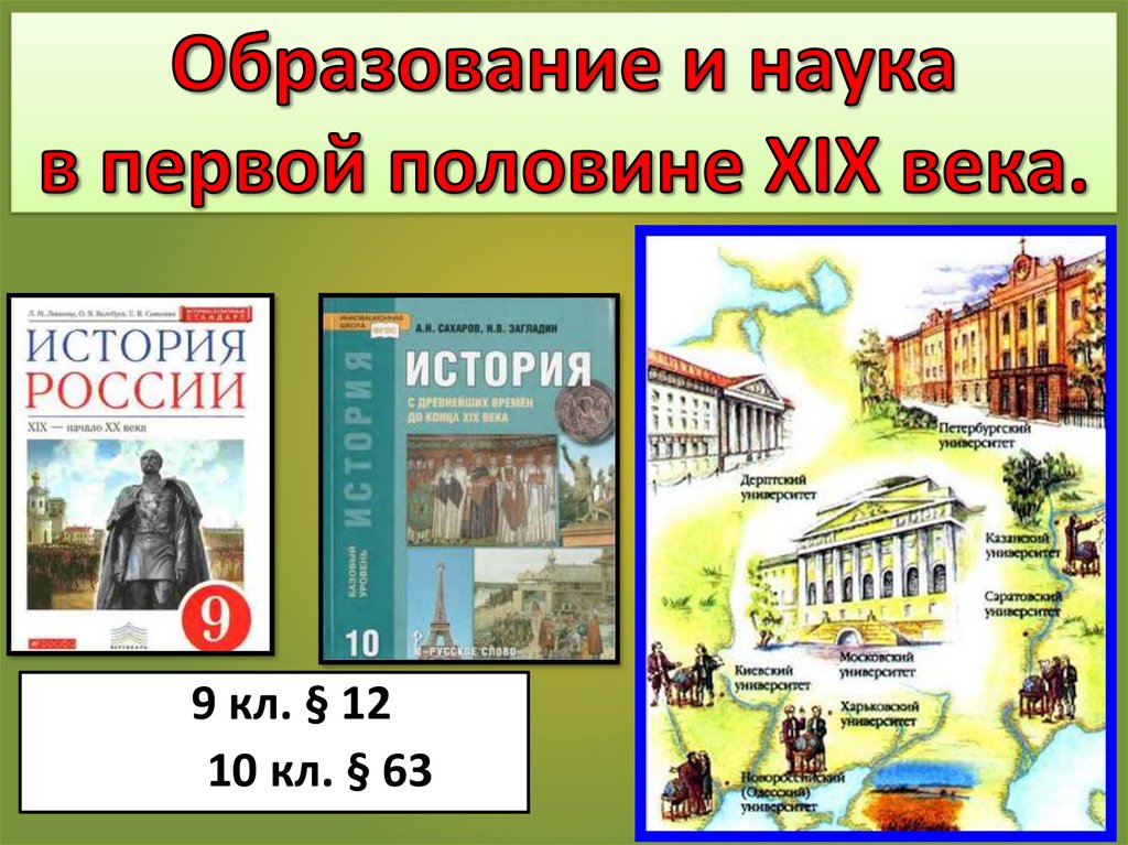 кл. & 12(1). Образование и наука в пер.пл.XIXв