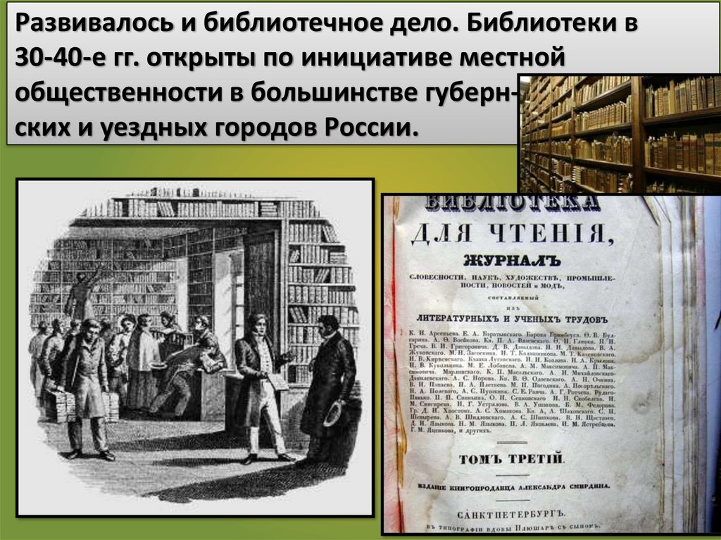 Развивалось и библиотечное дело. Библиотеки в30-40-е гг. открыты по инициативе местной