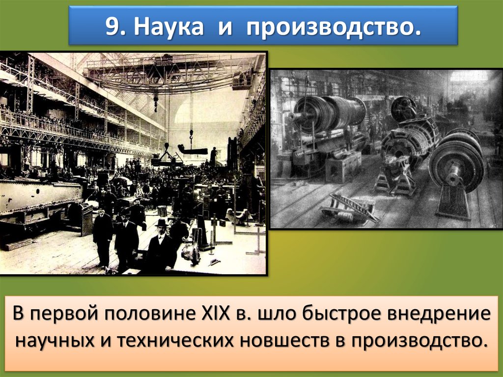 9. Наука и производство.В первой половине XIX в. шло быстрое внедрение