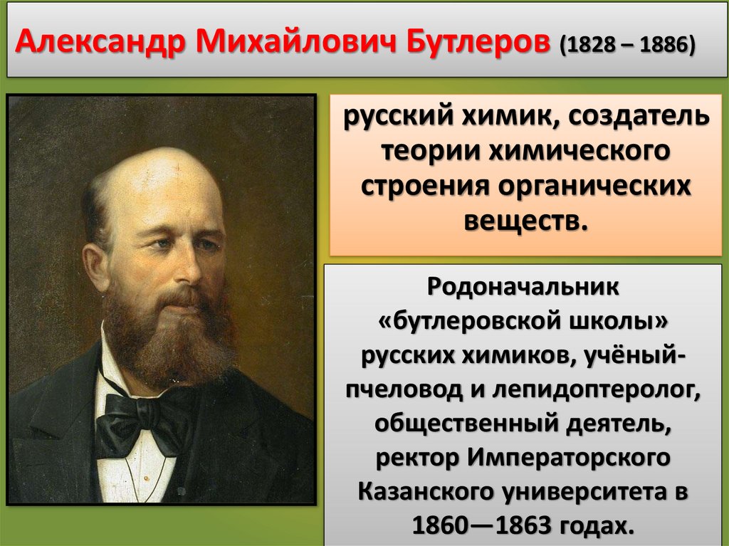 Александр Михайлович Бутлеров (1828 – 1886)русский химик, создатель