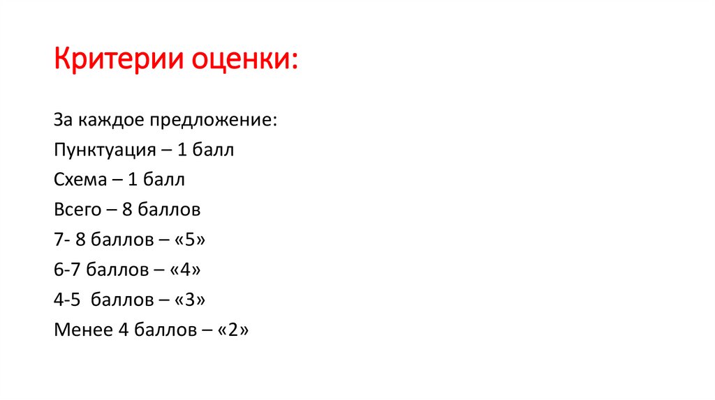 Критерии оценки:За каждое предложение:
