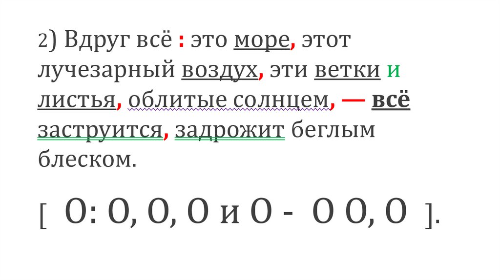 2) Вдруг всё : это море, этотлучезарный воздух, эти ветки и