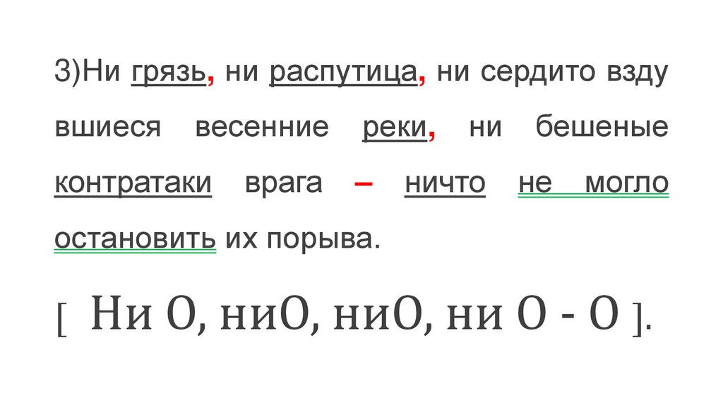 3)Ни грязь, ни распутица, ни сердито вздувшиеся
