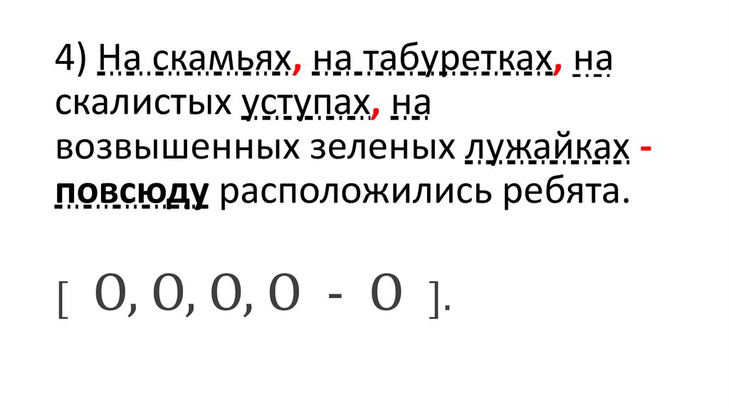 4) На скамьях, на табуретках, наскалистых уступах, на