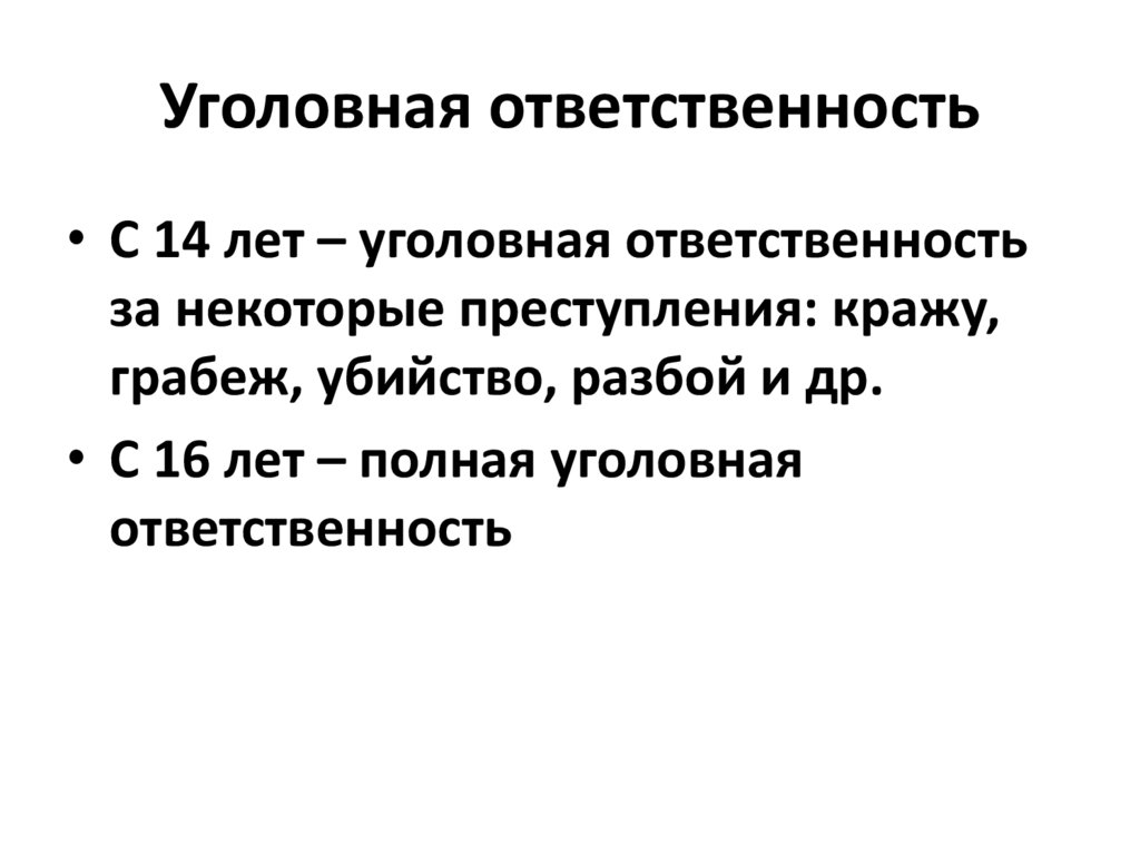 Уголовная ответственность• С 14 лет – уголовная ответственность