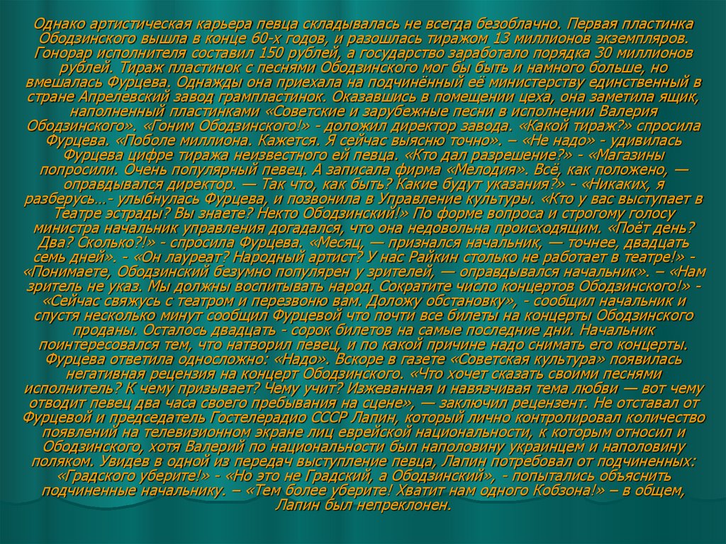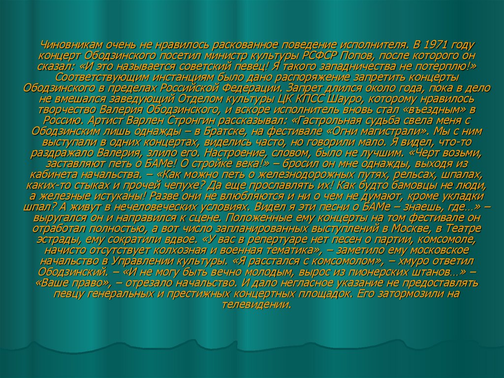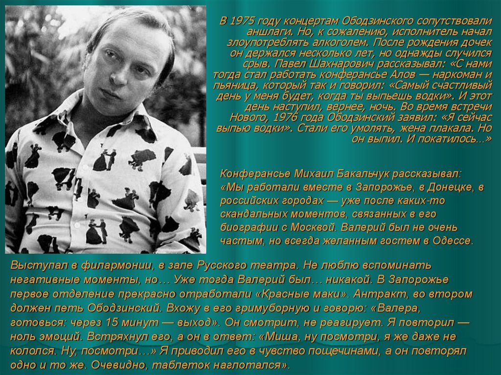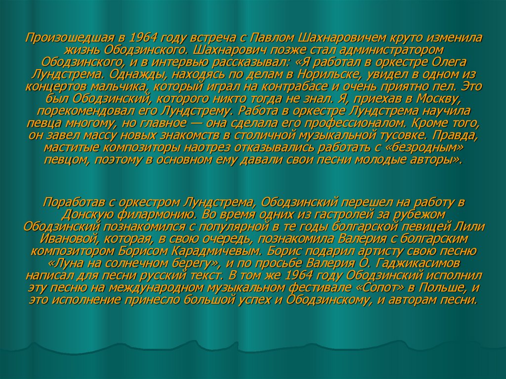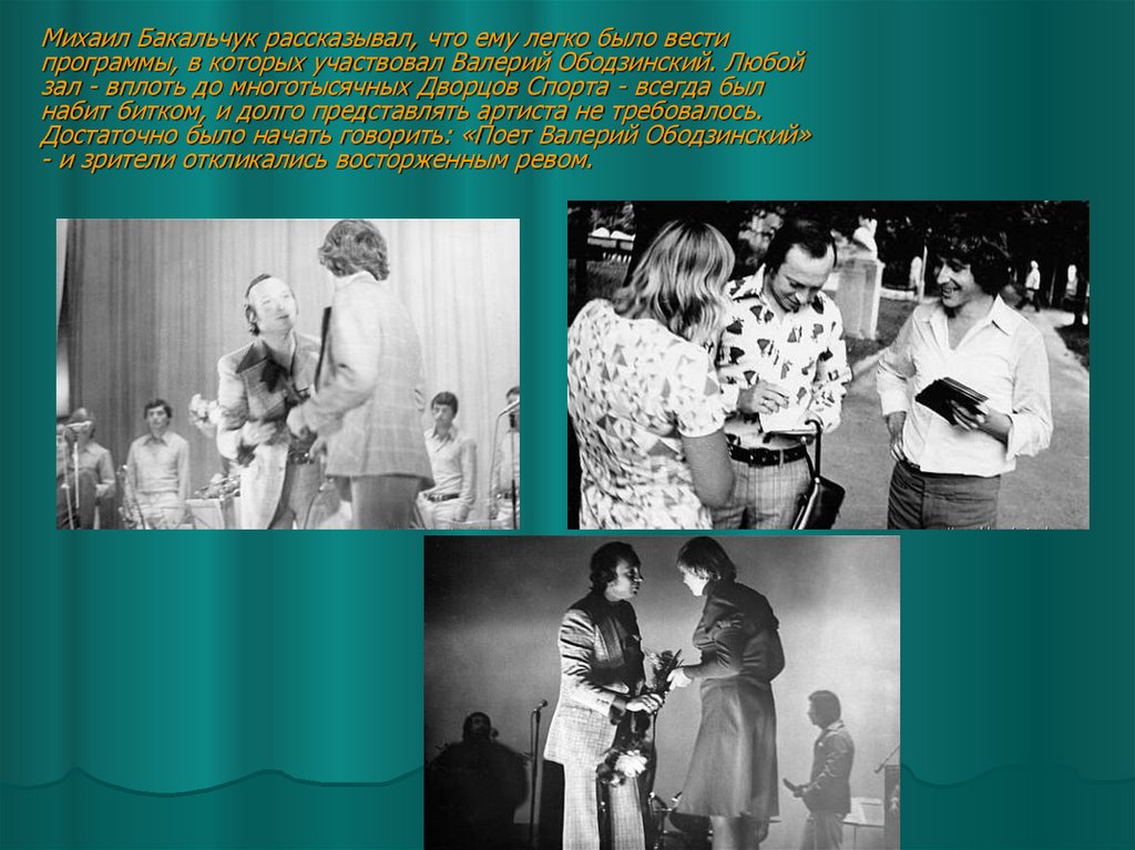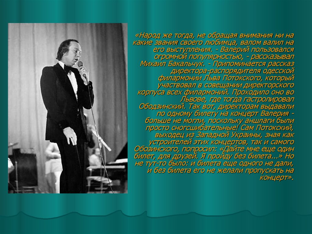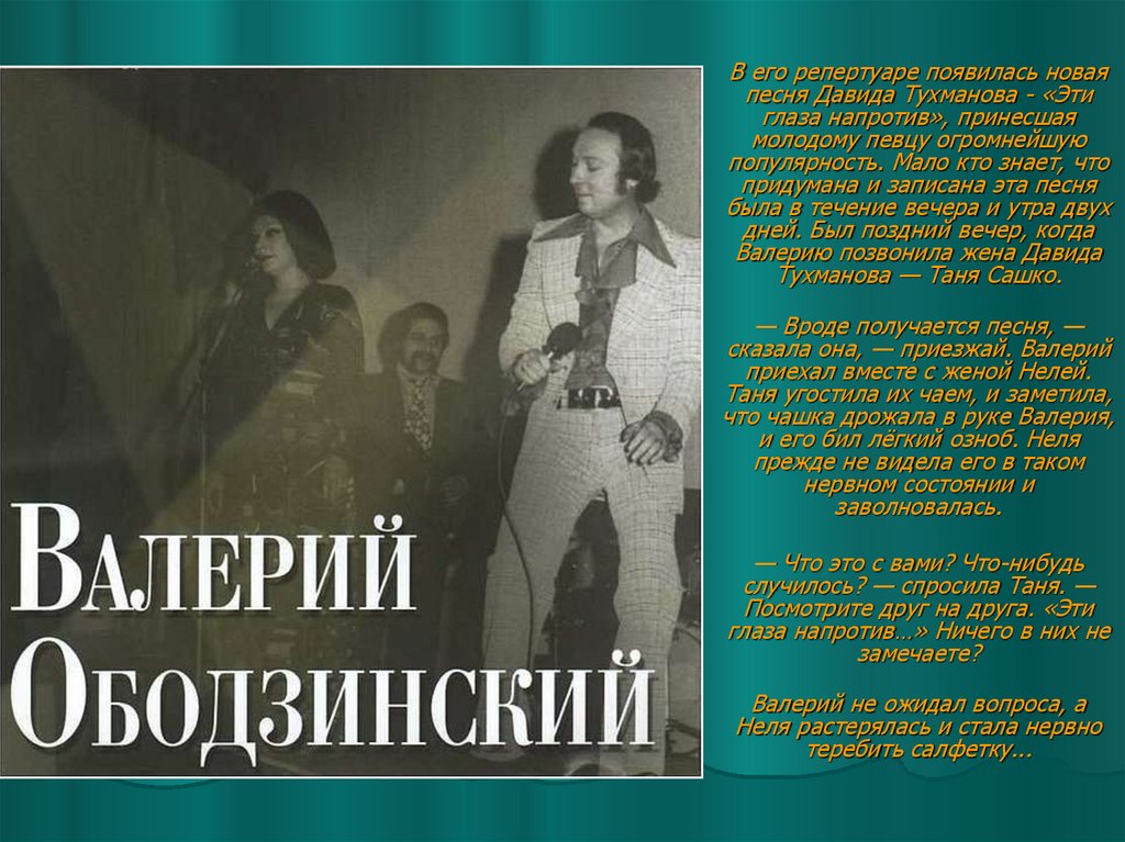 юного Ободзинского. Они разговорились, и Валерий признался, что очень хотел бы выступать