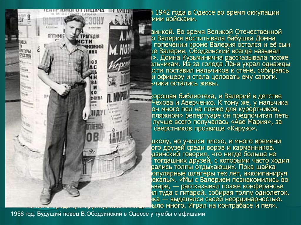 1956 год. Будущий певец В.Ободзинский в Одессе у тумбы с афишами