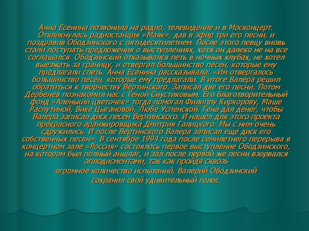 Ободзинского Анну Есенину, что