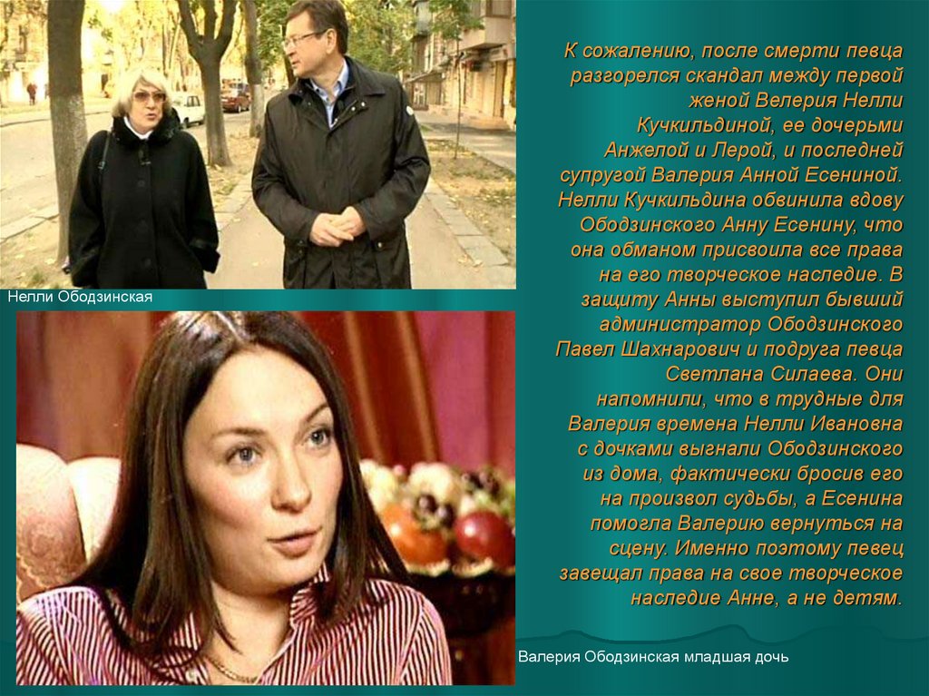 Нелли ОбодзинскаяК сожалению, после смерти певца