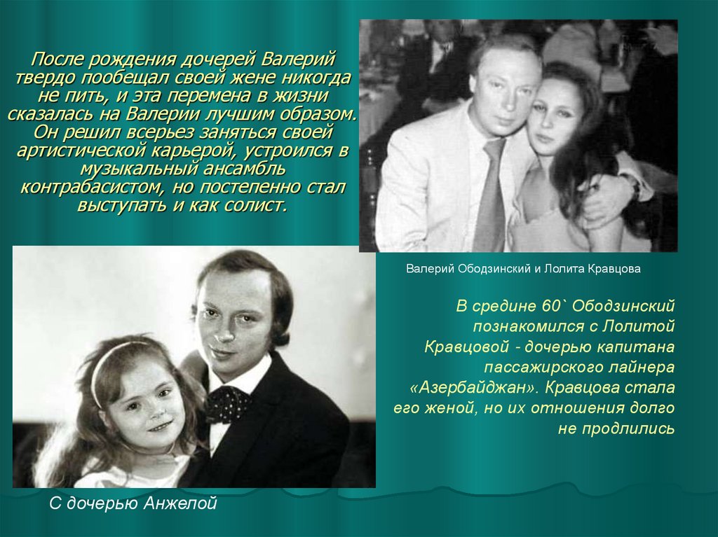 Валерию. Анжелика была названа в честь его песни «Анжела»,
