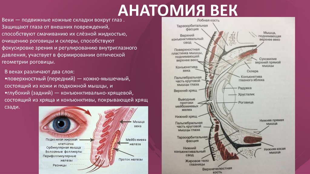 АНАТОМИЯ ВЕКВеки — подвижные кожные складки вокруг глаз .