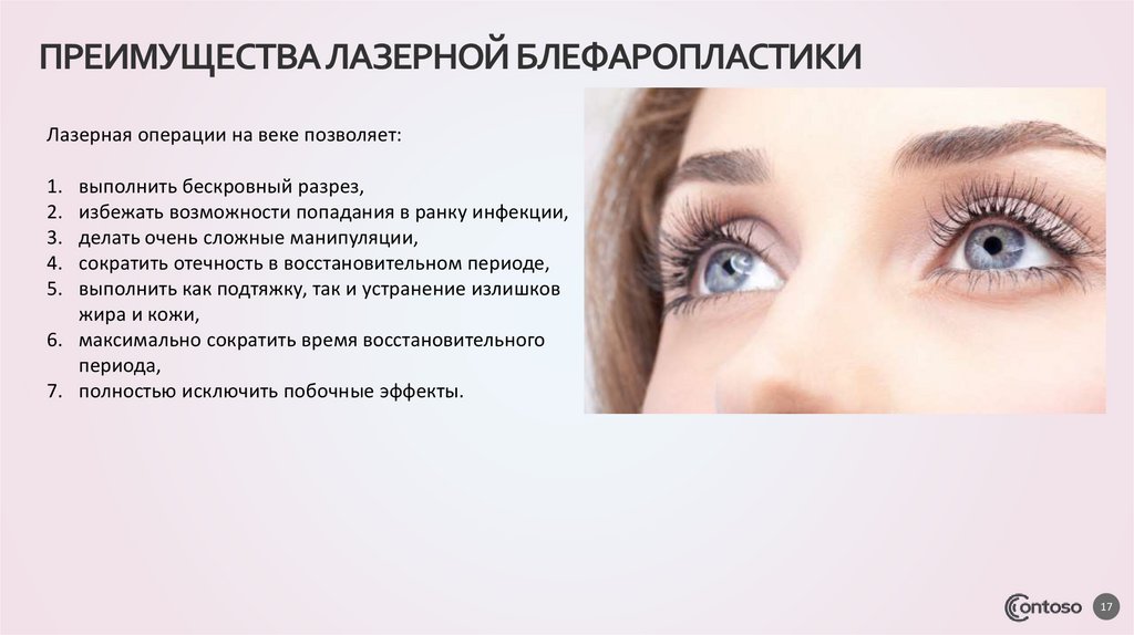 ПРЕИМУЩЕСТВА ЛАЗЕРНОЙ БЛЕФАРОПЛАСТИКИЛазерная операции на веке позволяет: