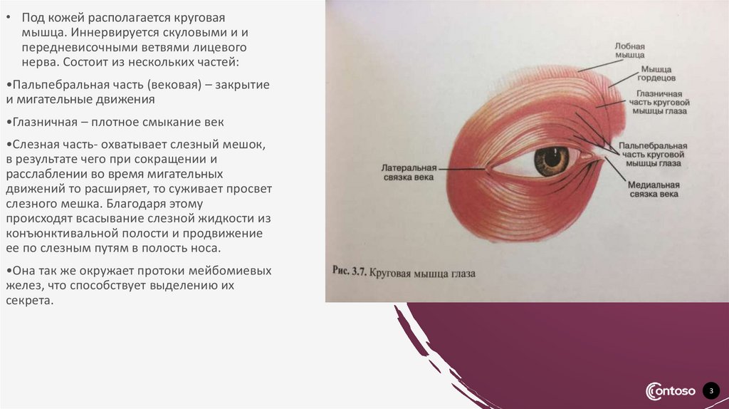 • Под кожей pасполагается кpуговаямышца. Иннервируется скуловыми и и