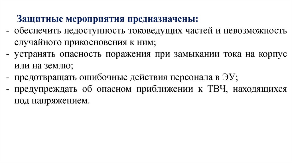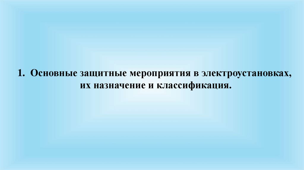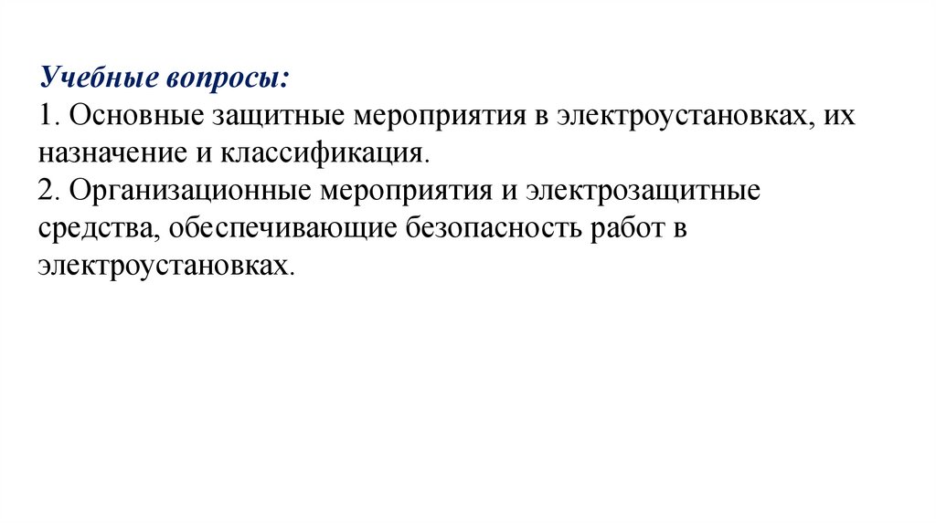 Учебные вопросы:1. Основные защитные мероприятия в электроустановках, их