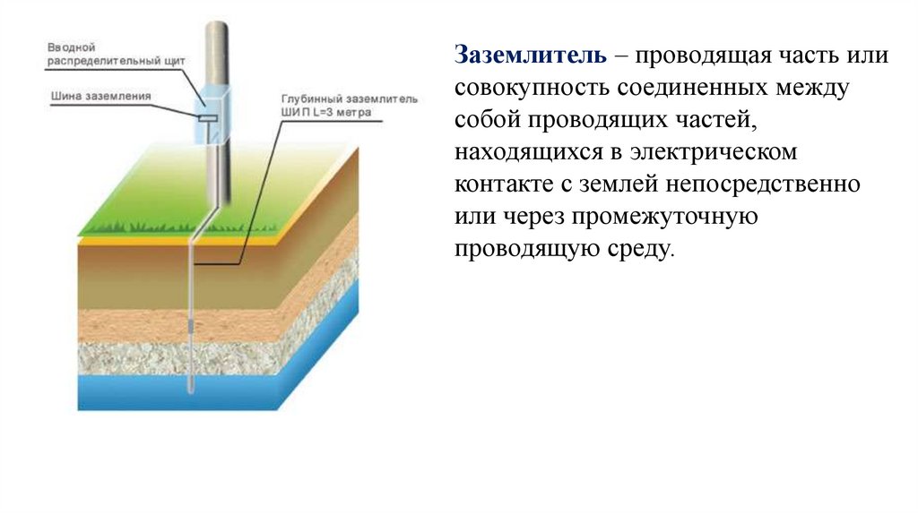 Заземлитель – проводящая часть илисовокупность соединенных между