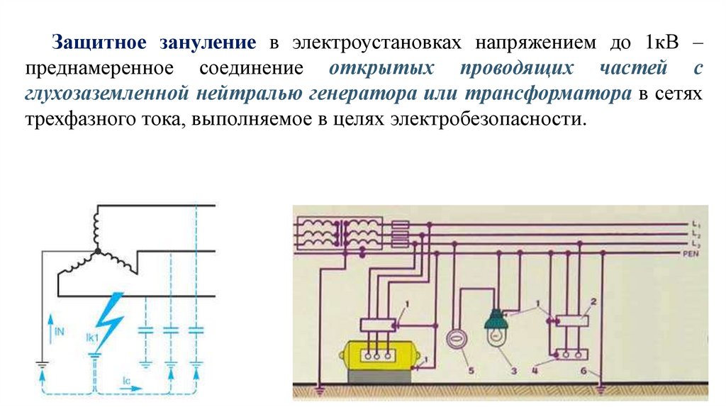 Защитное зануление в электроустановках напряжением до 1кВ –преднамеренное соединение открытых проводящих частей с