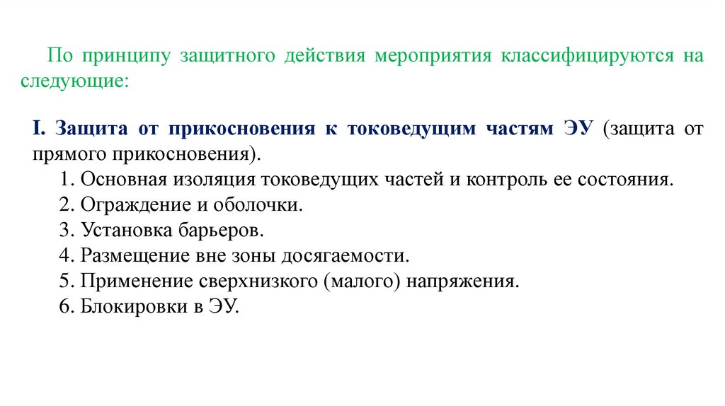 I. Защита от прикосновения к токоведущим частям ЭУ (защита от