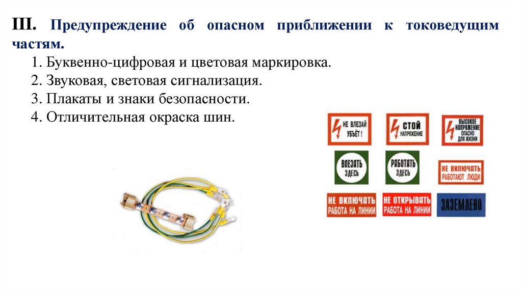 III. Предупреждение об опасном приближении к токоведущимчастям.