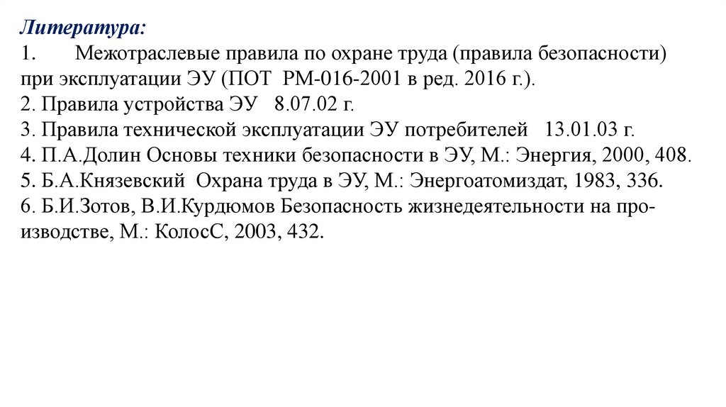 4. П.А.Долин Основы техники безопасности в ЭУ, М.: Энергия, 2000, 408.