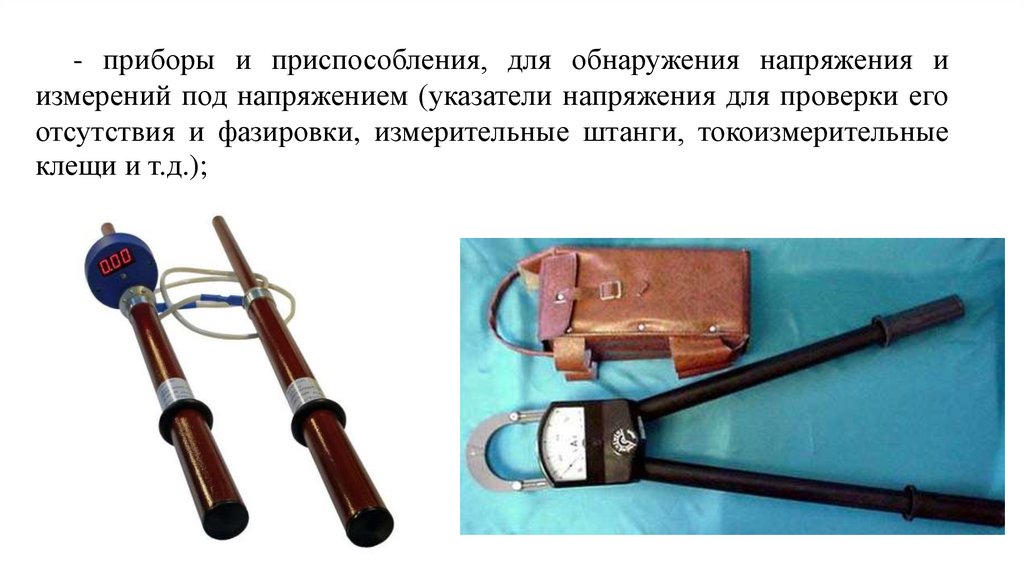 - приборы и приспособления, для обнаружения напряжения иизмерений под напряжением (указатели напряжения для проверки его