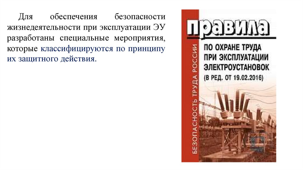 при эксплуатации ЭУ (ПОТ РМ-016-2001 в ред. 2016 г.).