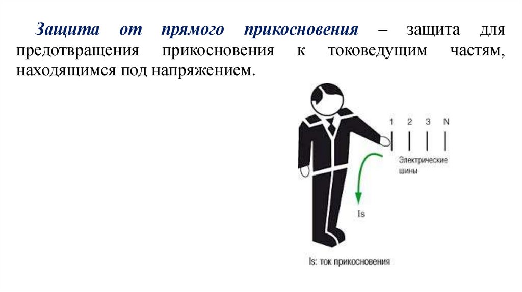 Защита от прямого прикосновения – защита дляпредотвращения прикосновения к токоведущим частям,
