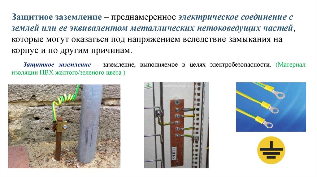Защитное заземление – заземление, выполняемое в целях электробезопасности. (Материал