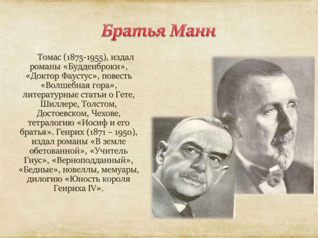 Томас (1875-1955), издалроманы «Будденброки»,