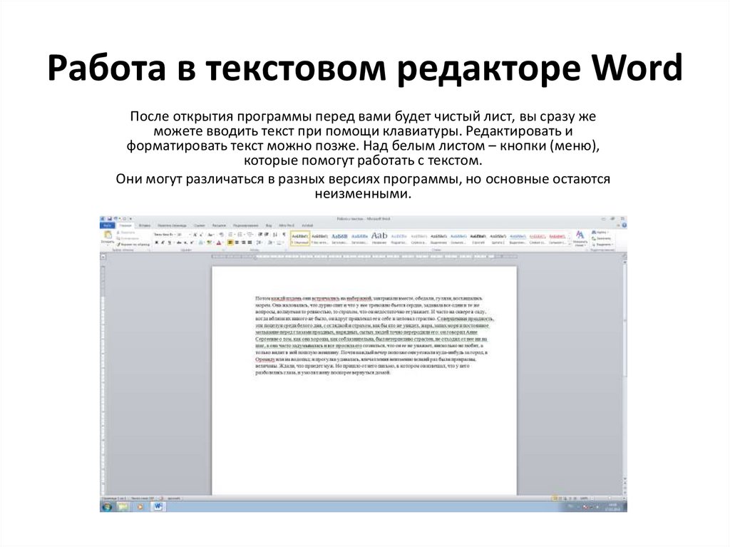 Работа в текстовом редакторе WordПосле открытия программы перед вами будет чистый лист, вы сразу же