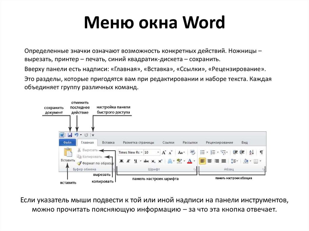 Меню окна WordОпределенные значки означают возможность конкретных действий. Ножницы –