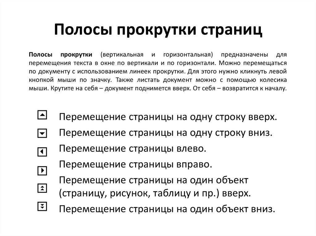 Полосы прокрутки страницПолосы прокрутки (вертикальная и горизонтальная) предназначены для