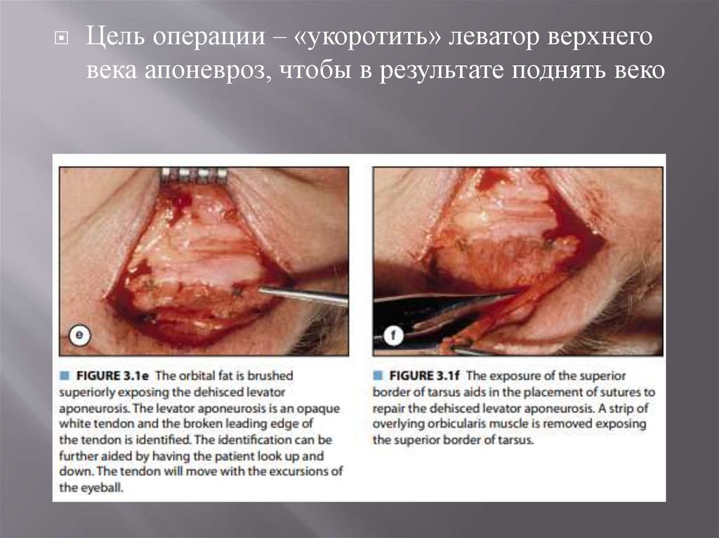 Цель операции – «укоротить» леватор верхнеговека апоневроз, чтобы в результате поднять веко