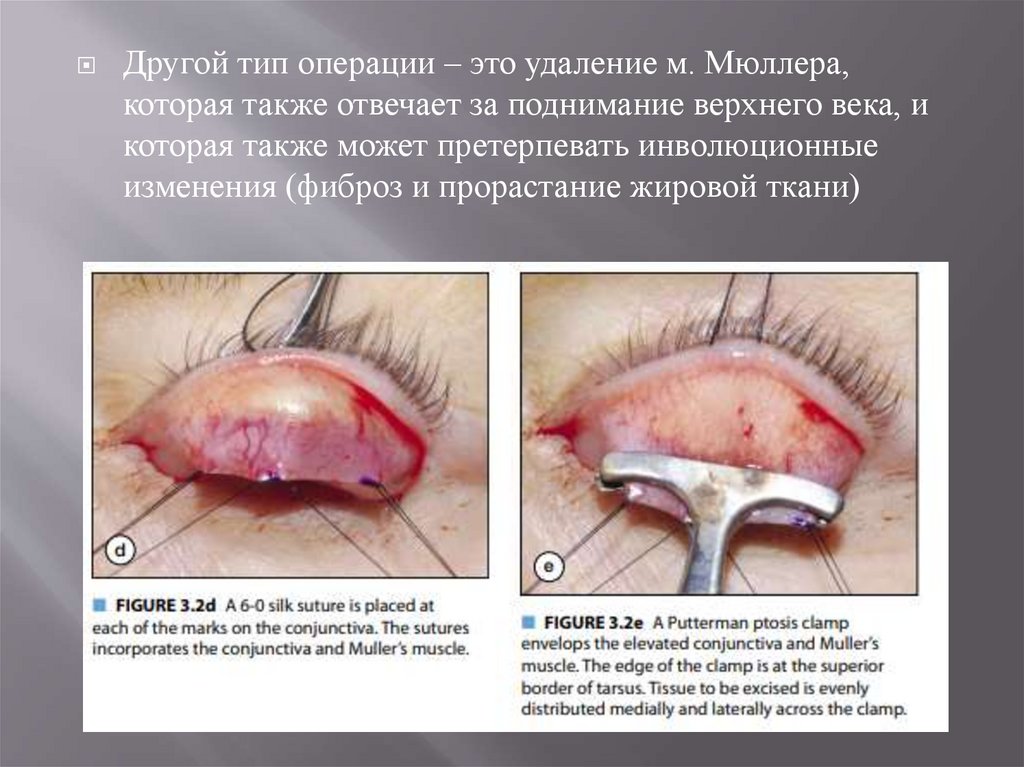 Другой тип операции – это удаление м. Мюллера,которая также отвечает за поднимание верхнего века, и