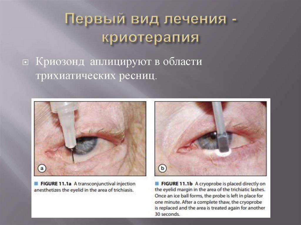 Криозонд аплицируют в областитрихиатических ресниц.