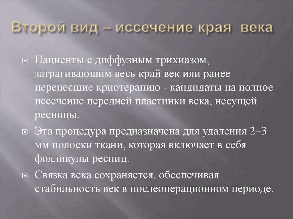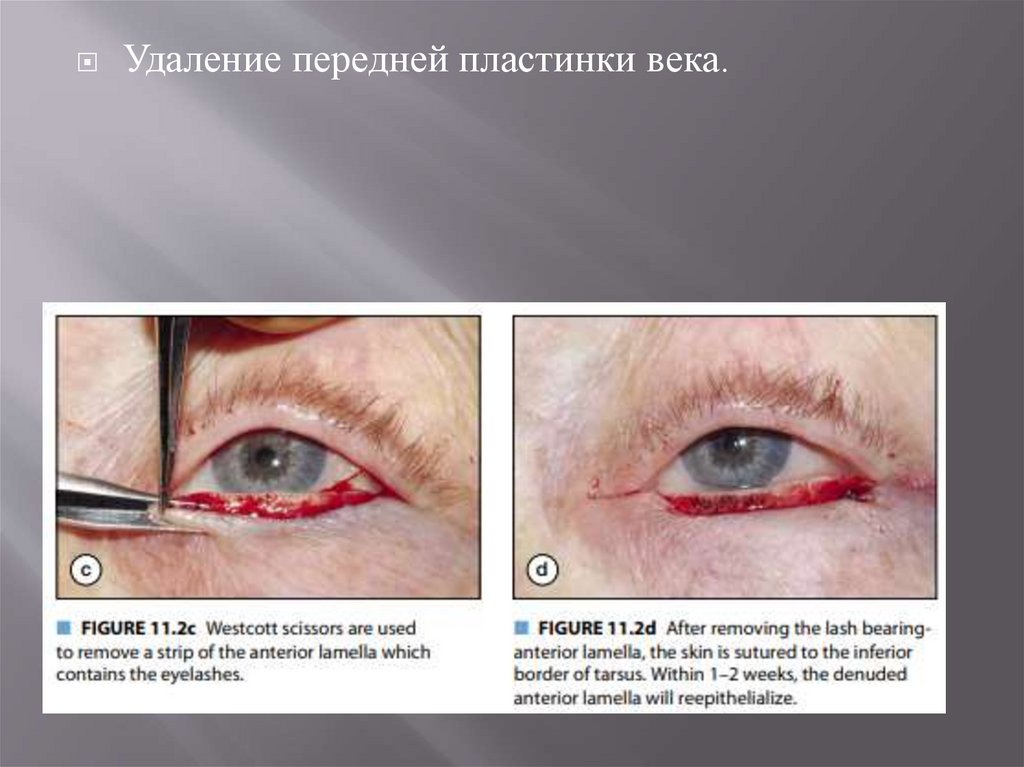 иссечение передней пластинки века, несущей