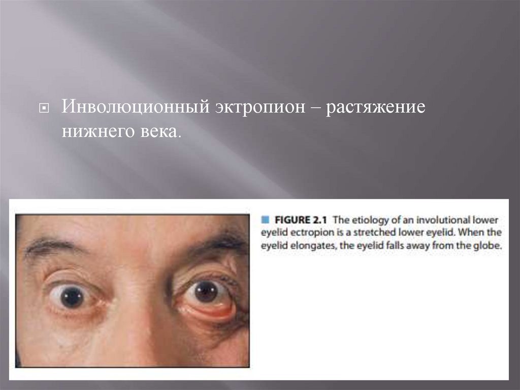 Инволюционный эктропион – растяжениенижнего века.