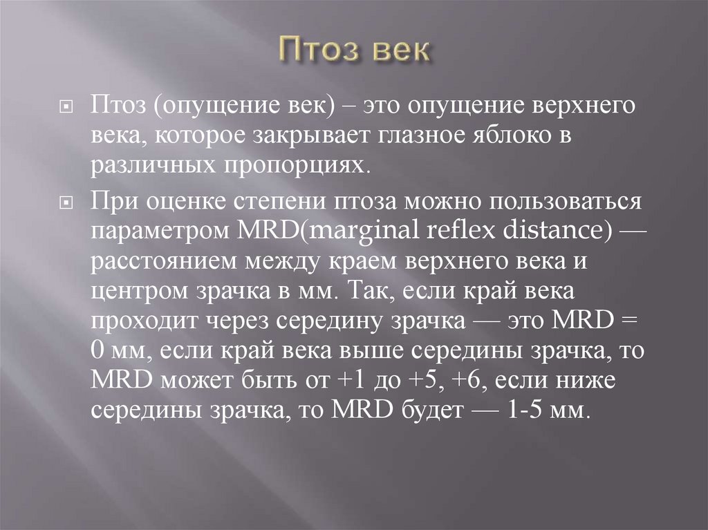 параметром MRD(marginal reflex distance) —