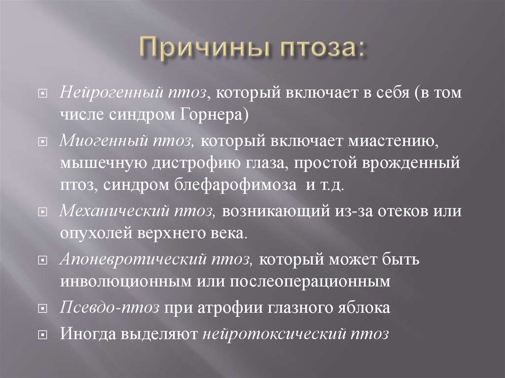 Иногда выделяют нейротоксический птоз